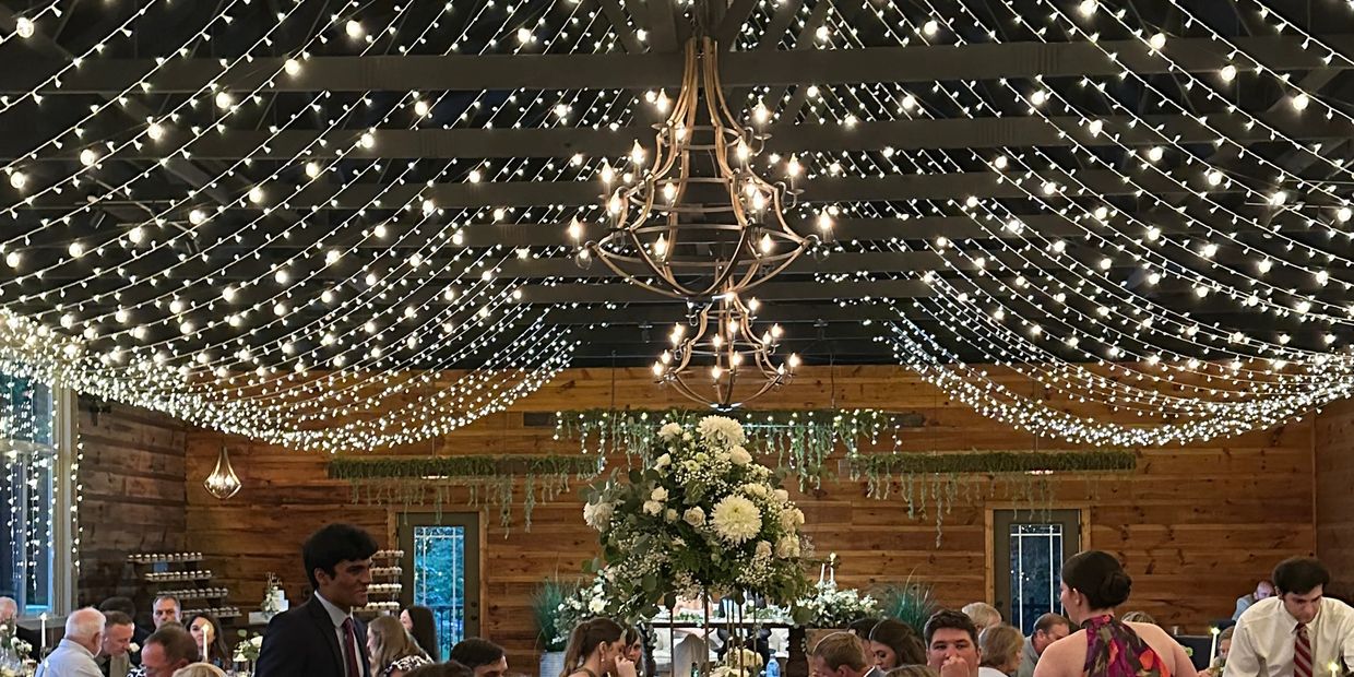 The Reception Hall at Southern Tree Plantation glows under hundreds of string lights, embracing your celebration with warmth, comfort, and joy. This climate-controlled space reflects true Southern charm — welcoming families and friends to laugh, dine, and dance together.
